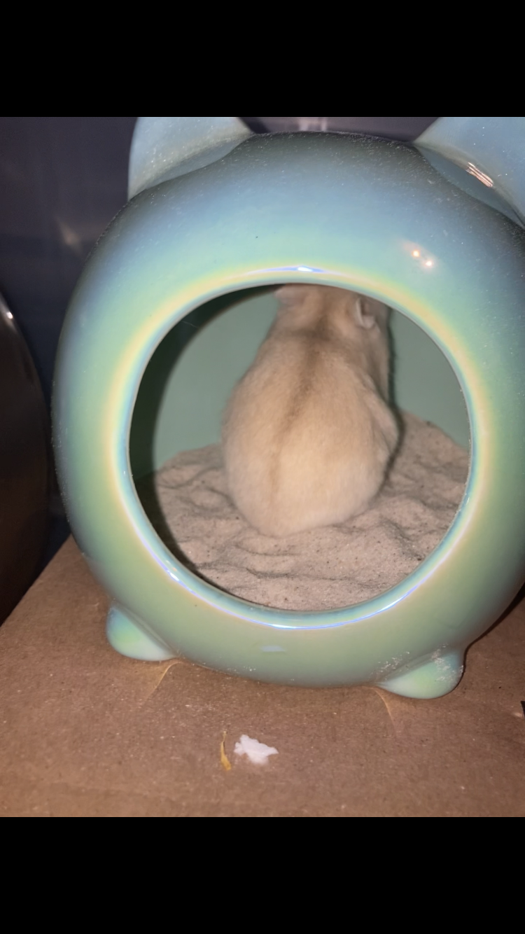 Mes hamsters et moi aimons tout particulièrement utiliser cette cachette comme bac à sable. Étant donner qu'ils se sentent plus en sécurités, ils l'utilisent plus souvent que le restant de leurs sables pour faire leurs besoins.