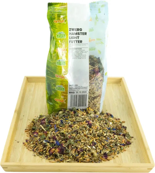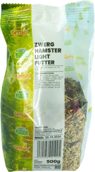 La nourriture légère pour hamster nain Getzoo a été adaptée à la demande de nombreux propriétaires de hamsters nains. Cette nourriture est particulièrement adaptée aux hamsters nains qui ont tendance à être en surpoids ou qui, en plus de leur nourriture principale, devraient recevoir beaucoup de nourriture d'aventure ou de friandises pour le lien entre les humains et les animaux.