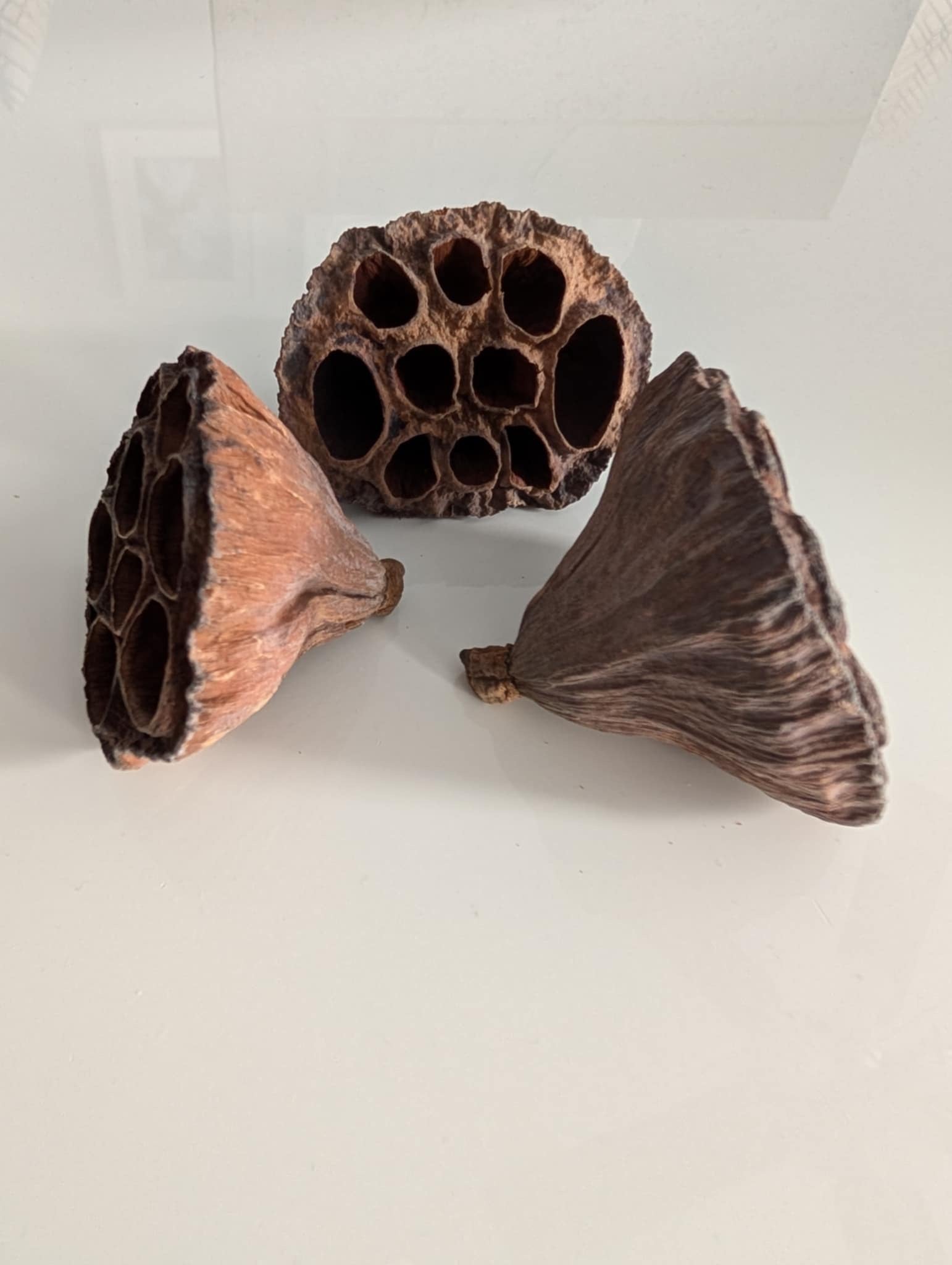 Vous avez 3 options: Grosse gousse de lotus (+ ou - 3.5"), Paquet de 3 petites gousses de lotus (+ ou - 2"), ou une grosse gousse de lotus & une cloche naturelle (+ ou - 3")