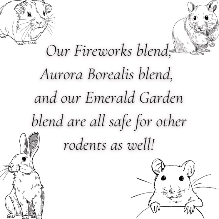 Mélange de fleurs et d'herbes séchées à utilisés comme addition à la nourriture de votre rongeur. Inclus: tiges de persil, centaurée bleuet, feuilles de framboise, échinacée, camomille, feuilles de pissenlits